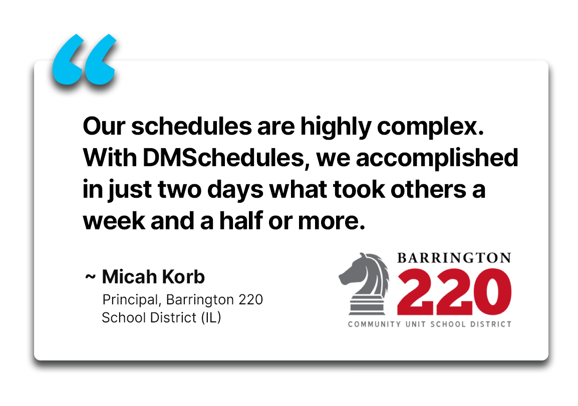 Micah Korb, principal in Barrington 220 School District (IL), discusses the advantages of using DMSchedules for elementary and special education.